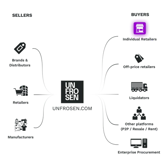 Unfrosen is a discreet B2B wholesale platform that helps fashion sellers — including brands, retailers, distributors, and wholesalers — turn excess stock into working capital. We connect your unsold inventory with 3,000+ verified buyers across Europe, with no upfront fees and full control over where and how your products are sold.